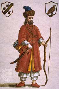 The graphic is of Marco Polo in his Tartar military outfit.