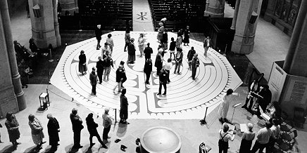 WALK THE LABYRINTHThis shows how the Labyrinth, an ancient occult and pagan ritual, has been taken into Christendom by silly Epsicopalians. Here is the Episcopalian description of what is happening: "What is a Labyrinth? A Labyrinth is a 40-foot circular sacred design painted on canvass and laid on the floor, to be walked as a spiritual meditation. The design requires the walker to begin at the outside of the circle and wind slowly in toward the center and then wind slowly out again, using the exact same path. The meditation focuses mindfulness first on "shedding" while walking in; second on "Illumination" while in the center; and third on "Union" while walking out. The Labyrinth is a transformative spiritual journey; it is open to anyone, regardless of faith or tradition."