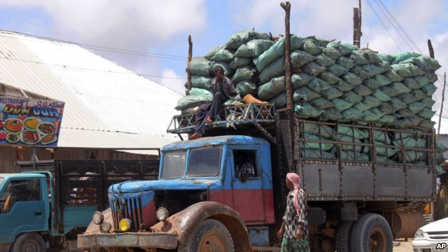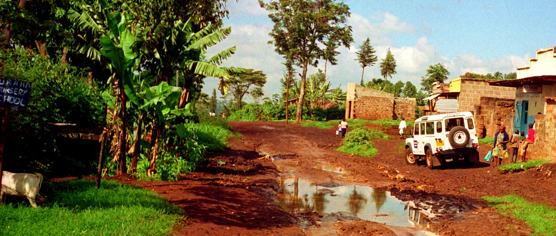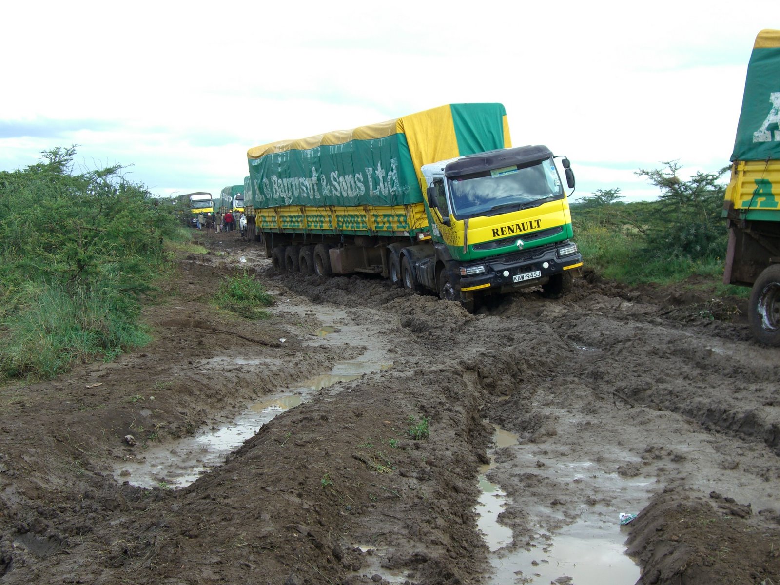 The Kenya road and mud are at the right, but the truck model shows this is a recent photo.